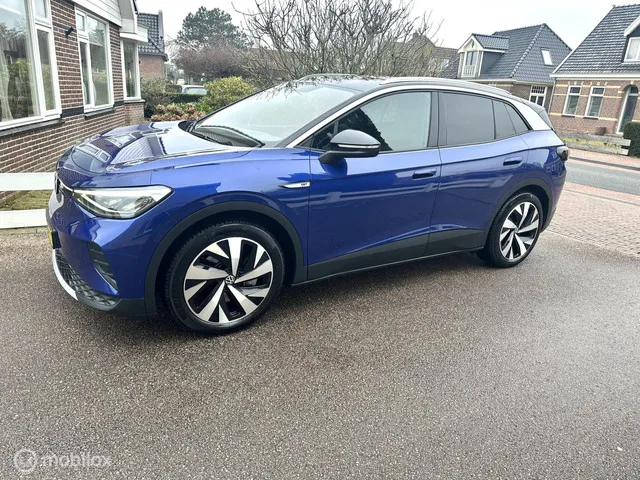 Volkswagen ID.4 First 77 kWh ACHTERUITRIJ CAMERA CARPLAY TREKHAAK SFEERVERLICHTING ACCU GARANTIE SOH 90%!! Kenteken: K-322-HT; Merk: Volkswagen; Model: ID.4; APK tot: 23-12-2026; Tellerstand: 105360 KM; Carrosserievorm: SUV; Aantal deuren: 5; Brandstofsoort: Elektrisch; Bouwjaar: 2020; Transmissie: Automaat; Kleur: blauw Metallic; Bekleding: Leder/Stof; Kleur interieur: grijs; Motorcode: EBJ; Vermogen: 70 kW / 95pk; Ledig gewicht: 2024 kg; Max. trekgewicht: 1000 kg; Aantal zitplaatsen: 5; BTW/Marge: BTW aftrekbaar, de prijs is inclusief BTW; Lengte: 458 cm; Breedte: 185 cm; Aantal sleutels: 2; Onderhoudshistorie aanwezig: Ja; Motorrijtuigenbelasting: € 270 - 296 per kwartaal; Emissieklasse: Euro Z. Comfort. Regensensor. Exterieur. Achterruitwisser; Andere dakkleur; Buitenspiegels elektrisch inklapbaar; Buitenspiegels elektrisch verstel- en verwarmbaar; Centrale vergrendeling met afstandsbediening; Dakrails; Extra getint glas achter; Getint glas; LED achterlichten; LED...