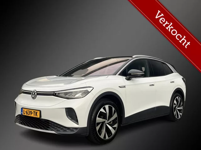 Volkswagen ID.4 First 77 kWh 204PK MARGE! Voorzien van oa: El. trekhaak, stoel/stuurverwarming, 20inch Carplay en alcantara! Volkswagen ID.4 First 77 kWh 204PK 20INCH+CARPLAY+EL TREKH. Kenteken: L-639-TK; Merk: Volkswagen; Model: ID.4; APK tot: 10-03-2027; Tellerstand: 61959 KM; Carrosserievorm: SUV; Aantal deuren: 5; Brandstofsoort: Elektrisch; Accucapaciteit: 77 kWh; Aantal laadfasen: 3-fasen; Geschikt voor snelladen: Ja; Bouwjaar: 2021; Transmissie: Automaat; Kleur: wit; Kleurnaam: Gletscher white; Bekleding: Leder/Alcantara; Kleur interieur: antraciet; Interieurnaam: Alcantara First ed.; Motorcode: EBJ; Vermogen: 150 kW / 204pk; Ledig gewicht: 2024 kg; Max. trekgewicht: 1000 kg; Aantal zitplaatsen: 5; BTW/Marge: Marge, de BTW is niet aftrekbaar; Lengte: 458 cm; Breedte: 185 cm; Aantal sleutels: 2; Onderhoudshistorie aanwezig: ; Motorrijtuigenbelasting: € 93 - 103 per kwartaal; Emissieklasse: Euro Z. Comfort. Regensensor. Exterieur. Achterruitwisser; Andere dakkleur...