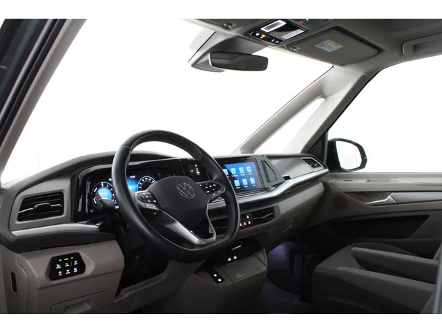 Volkswagen Multivan 1.4 eHybrid L2H1 Life uitvoering. Deze Volkswagen Multivan combineert ruimte, comfort en moderne techniek op een bijzonder prettige manier. Dankzij de plug-in hybride aandrijving rijdt u korte afstanden volledig elektrisch, terwijl u voor langere ritten altijd beschikt over een krachtige en soepele benzinemotor. Dat maakt deze Multivan niet alleen zuinig, maar ook veelzijdig in dagelijks gebruik. De auto verkeert in nette staat en biedt plaats aan zes personen, met daarbij volop bagageruimte en een comfortabele hoge instap. De rijke uitrusting zorgt ervoor dat elke rit ontspannen verloopt. Zo geniet u van automatische airconditioning, een separaat regelbare airco achter, verwarmde voorstoelen en een verwarmde voorruit. Het panoramadak en het extra getinte glas zorgen voor een lichte en prettige sfeer in het interieur. Op technologisch vlak is deze Multivan helemaal bij de tijd. Het volledig digitale instrumentenpaneel en het centrale multimediascherm geven u alle...
