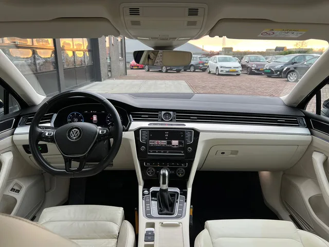 Aangeboden! Keurig nette Volkswagen Passat 1.4 TSI GTE Automaat! Deze Volkswagen beschikt over veel leuke opties o.a. vol lederen sportstoelen, stoelverwarming, navigatie, clima, cruise control, panorama dak, modehoek detectie, camera, virtual dashboard etc. etc. De auto rijdt en schakelt goed. Onderhoud historie + 2 sleutels zijn aanwezig. APK tot en met 11 - 2026!! SOH rapport aanwezig 83%. Wij bieden u deze Volkswagen aan voor € 14.975,-!! Plug-in hybride; 6 versn., Automaat; 115 kW; 4 cilinders; 1.395cc; Gewicht: 1.635kg; Laadvermogen: 615kg; GVW: 2.250kg; Max. trekgewicht: 1.600kg; LxBxH: 477x183x148cm; Wielbasis: 279cm; Accu: 9kWh; Accu laden: Type 2, 1-fase, 3.6 kW, 4 uur en 9 minuten; 0-100 km/h: 7,6s; Topsnelheid: 225km/u; Interieurkleur: beige; 5 zitplaatsen; 1,6 l/100km; 19,8 kWh/100km; 37 g/km CO₂; Energielabel A; Euro 6; Onderhoudsboekjes aanwezig; APK: tot nov. 2026; 2 sleutels (2 handzenders); Wegenbelasting: € 201-€ 222p/kwrt; KR-073-R