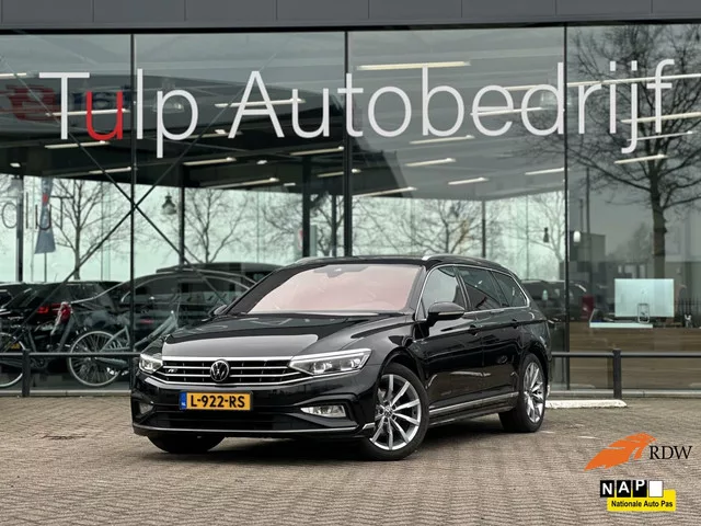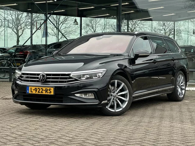 Volkswagen Passat Variant 1.5 TSI R-Line Automaat Trekhaak NAP. Kenteken: L-922-RS; Merk: Volkswagen; Model: Passat Variant; APK tot: 02-10-2027; Tellerstand: 136242 KM; Carrosserievorm: Station; Aantal deuren: 5; Brandstofsoort: Benzine; Bouwjaar: 2021; Transmissie: Automaat; Kleur: zwart Metallic; Bekleding: Leder/Alcantara; Kleur interieur: zwart; Motorinhoud: 1498 cc; Aantal cilinders: 4; Motorcode: DPC; Vermogen: 110 kW / 150pk; Ledig gewicht: 1379 kg; Max. trekgewicht: 1600 kg; Aantal zitplaatsen: 5; Verbruik: 5.4 l/100 km; BTW/Marge: BTW aftrekbaar, de prijs is inclusief BTW; Lengte: 477 cm; Breedte: 183 cm; Aantal sleutels: 2; Onderhoudshistorie aanwezig: Ja; Motorrijtuigenbelasting: € 216 - 235 per kwartaal; Emissieklasse: Euro 6. Pakket: Spiegel pakket. Buitenspiegels elektrisch inklapbaar; Buitenspiegels met verlichting. Pakket: R line pakket. Lederen sportstoelen; Luxe lederen bekleding; Sportstoelen. Comfort. Boordcomputer; Cruise control; Regensensor. Exterieur. ...