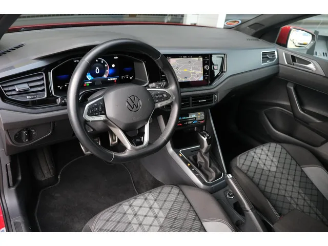 Volkswagen Polo 1.0TSI 110PK R-line Facelift Nieuw Model DSG Automaat Bouwjaar 01/2022 "Kings Red Metallic" R-line Exterieur R-line Interieur Panorama Dak IQ Light Led Parkeercamera Adaptieve Cruise Control Virtual Cockpit. Meer informatie: Transmissie: 7 versnellingen, Automaat; Voorwielaandrijving; Vermogen: 81 kW (110 PK); Aantal cilinders: 3; Motorinhoud: 999 cc; Ledig gewicht: 1.107 kg; GVW: 1.107 kg; Max. trekgewicht: 1.100 kg (ongeremd 600 kg); Acceleratie (0-100): 10,4 s; Topsnelheid: 195 km/u; Interieurkleur: Donkergrijs; 5 zitplaatsen; Gemiddeld brandstofverbruik: 5,4 l/100km (1 op 18,5); 2 sleutels (2 handzenders); Motorrijtuigenbelasting: € 145 - € 158 per kwartaal; vanaf € 343 p/m (financial lease, 72 maanden); informeer naar de mogelijkheden en voorwaarden