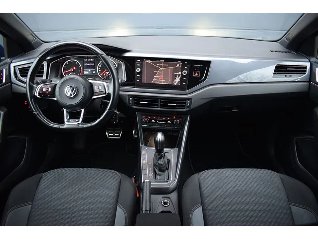 Volkswagen Polo 1.5 TSI 150pk DSG Highline R-line. Compleet uitgevoerd met o.a.: R-line in- en exterieur, LED koplampen en achterlichten, Navigatiesysteem 'Discover Media', APP Connect, Digitale radio ontvangst DAB, Beats soundsysteem, Achteruitrijcamera, Drive Profile Selection incl. Sport select onderstel, Lichtmetalen velgen 17" 'Bonneville', Climate control, Adaptieve Cruise Control, Sportstoelen voor, Zwarte hemelbekleding, Sfeer- en omgevingsverlichting, Lederen multifunctioneel stuurwiel met schakelflippers, Privacy glas acher, Alarm klasse III, Dorpellijsten in portieropening, Dagrijverlichting met coming-home functie, Regensensor, Variabele laadvloer. Origineel Nederlands geleverde Polo R-line, afkomstig van eerste eigenaar en dealer onderhouden met onderhoudshistorie aanwezig. 7 versn., Automaat; Modeljaar: 2019; Voorwielaandrijving; 110 kW; 250 Nm; 4 cilinders; 1.498cc; Gewicht: 1.135kg; Laadvermogen: 555kg; GVW: 1.690kg; Max. trekgewicht: 1.200kg; LxBxH: 417x175x146cm;...
