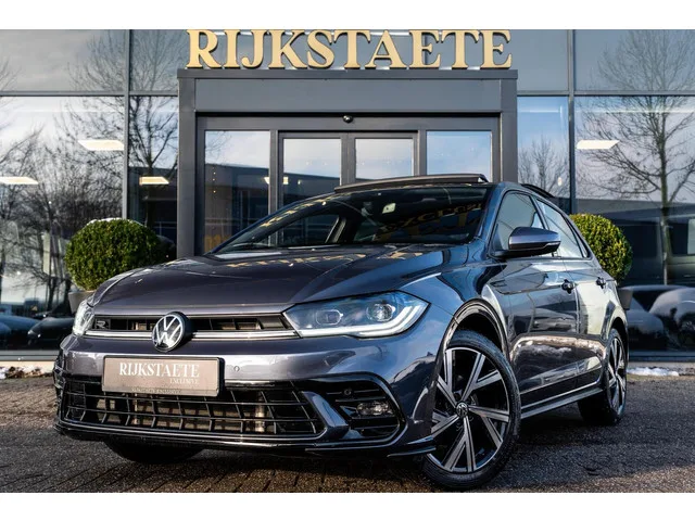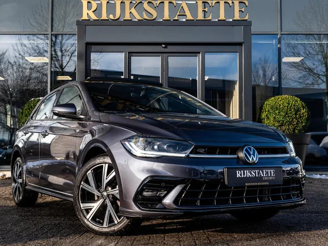 Volkswagen Polo 1.0 TSI R-Line|PANO|CAMERA|ACC|110 PK|17''. Merk: Volkswagen; Model: Polo; APK tot: 07-03-2029; Tellerstand: 24516 KM; Carrosserievorm: Hatchback; Aantal deuren: 5; Brandstofsoort: Benzine; Bouwjaar: 2025; Transmissie: Automaat; Kleur: grijs Metallic; Bekleding: Velours; Kleur interieur: zwart; Motorinhoud: 999 cc; Aantal cilinders: 3; Vermogen: 81 kW / 110pk; Ledig gewicht: 1101 kg; Max. trekgewicht: 1100 kg; Aantal zitplaatsen: 5; Verbruik: 5.6 l/100 km; BTW/Marge: Marge, de BTW is niet aftrekbaar; Lengte: 407 cm; Breedte: 175 cm; Aantal sleutels: 2; Onderhoudshistorie aanwezig: Dealer onderhouden; Motorrijtuigenbelasting: € 145 - 158 per kwartaal; Emissieklasse: Euro 6. Comfort. Boordcomputer; Cruise control; Regensensor. Exterieur. Achterruitwisser; Buitenspiegels elektrisch inklapbaar; Buitenspiegels elektrisch verstel- en verwarmbaar; Buitenspiegels elektrisch verstelbaar; Buitenspiegels verwarmbaar; Bumpers in carrosseriekleur; Centrale vergrendeling; Centrale...