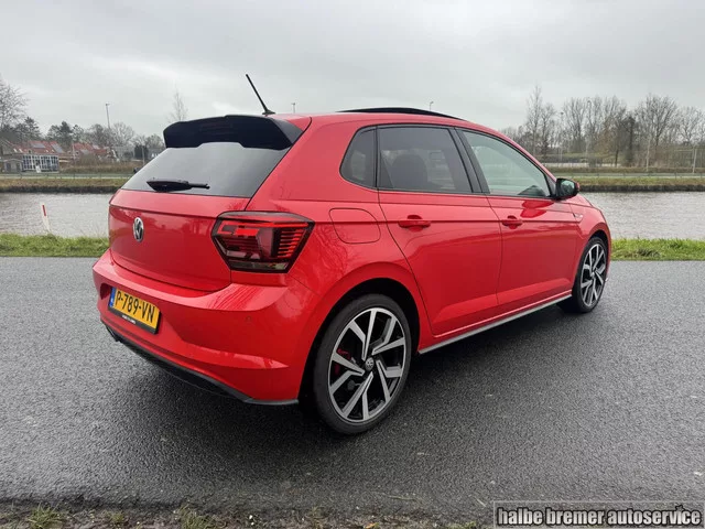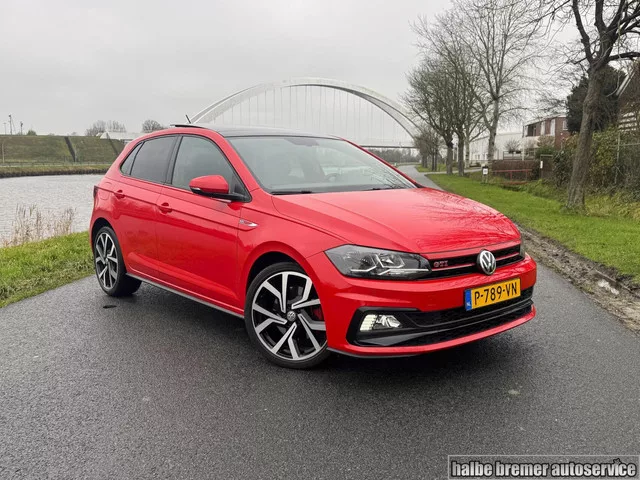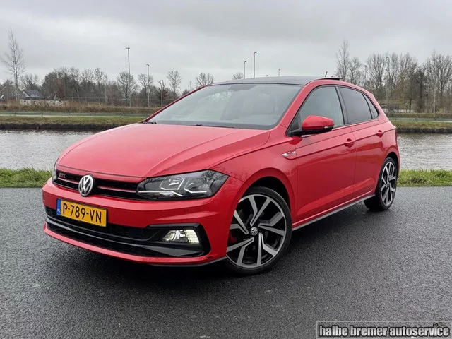 Volkswagen Polo 2.0 TSI GTI |Pano|Stoelverwarming|PDC|Carpl. Kenteken: P-789-VN; Merk: Volkswagen; Model: Polo; APK tot: 20-10-2027; Tellerstand: 119608 KM; Carrosserievorm: Hatchback; Aantal deuren: 5; Brandstofsoort: Benzine; Bouwjaar: 2019; Transmissie: Automaat; Kleur: rood; Motorinhoud: 1984 cc; Aantal cilinders: 4; Motorcode: DKZ; Vermogen: 147 kW / 200pk; Ledig gewicht: 1255 kg; Max. trekgewicht: 1200 kg; Aantal zitplaatsen: 5; Verbruik: 6.1 l/100 km; BTW/Marge: Marge, de BTW is niet aftrekbaar; Breedte: 175 cm; Hoogte: 1438 cm; Aantal sleutels: 2; Motorrijtuigenbelasting: € 192 - 211 per kwartaal; Emissieklasse: Euro 6. Pakket: Leder pakket. Lederen/velours bekleding; Voorstoelen verwarmd. Comfort. Boordcomputer; Cruise control. Exterieur. Adaptief demping systeem; Buitenspiegels elektrisch verstel- en verwarmbaar; Buitenspiegels in carrosseriekleur; Centrale vergrendeling met afstandsbediening; Dimlichten automatisch; Glazen schuifdak; LED achterlichten; LED...