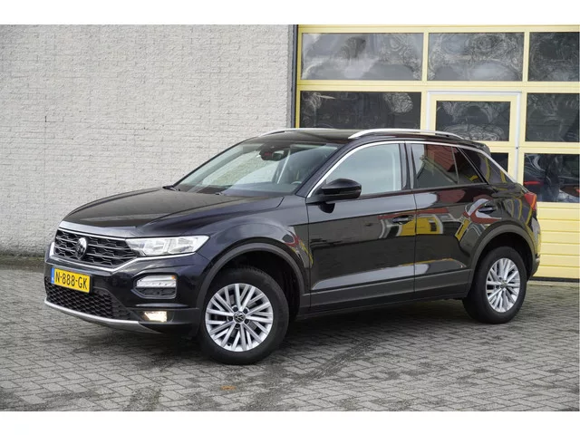 Volkswagen T-Roc Automaat met de zeer luxe aanwezige opties als Lichtmetalen velgen | Led dagrijverlichting | Led achterlichten | Parkeersensoren | Navigatiesysteem | App-Connect | Climate control | Cruise control | Extra getint glas. 7 versn., Automaat; Modeljaar: 2018; 4WD; 110 kW; 250 Nm; 4 cilinders; 1.498cc; Gewicht: 1.248kg; Laadvermogen: 622kg; GVW: 1.870kg; Max. trekgewicht: 1.500kg; LxBxH: 425x182x158cm; Wielbasis: 260cm; 50l tank; 0-100 km/h: 8,4s; Topsnelheid: 205km/u; Interieur: zwart, Stof; 5 zitplaatsen; 5,4 l/100km; 6,8 l/100km; 4,7 l/100km; 144 g/km CO₂; Energielabel C; Euro 6; Dealer onderhouden (onderhoudsboekjes aanwezig); Aantal eigenaren: 2; APK bij aflevering; Wegenbelasting: € 172-€ 188p/kwrt; N-888-GK