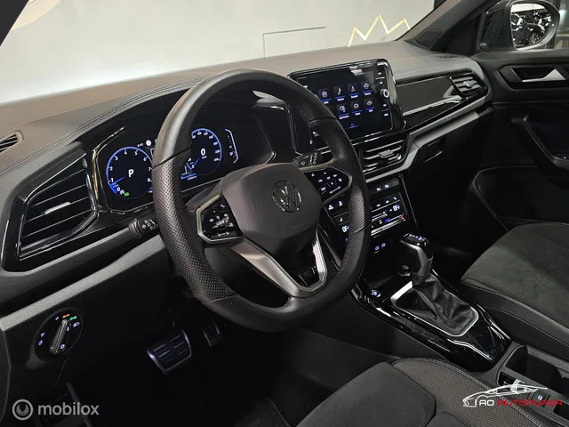 Volkswagen T-Roc 1.5 TSI R-Line Panorama/Keyless/Black Style/Ascot grey. Merk: Volkswagen; Model: T-Roc; Tellerstand: 62866 KM; Carrosserievorm: SUV; Aantal deuren: 5; Brandstofsoort: Benzine; Bouwjaar: 2022; Transmissie: Automaat; Kleur: grijs; Kleurnaam: Ascotgrey; Bekleding: Alcantara; Kleur interieur: zwart; Motorinhoud: 1498 cc; Aantal cilinders: 4; Vermogen: 110 kW / 150pk; Ledig gewicht: 1258 kg; Aantal zitplaatsen: 5; Verbruik: 6.1 l/100 km; BTW/Marge: Marge, de BTW is niet aftrekbaar; Aantal sleutels: 2; Onderhoudshistorie aanwezig: Dealer onderhouden. Pakket: Assistance pakket. Dodehoek detectie. Pakket: Black Style. Buitenspiegels in andere kleur; Extra getint glas achter; Hemelbekleding donker; Zwarte glans (piano)lak interieur afwerking. Pakket: Design pakket. Elektrisch glazen panorama-dak; Extra getint glas achter; Matrix LED koplampen. Pakket: LED lichtpakket. Matrix LED koplampen. Pakket: Keyless pakket. Elektrisch bedienbare achterklep met sensorsturing; Keyless...