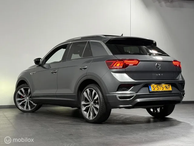 Volkswagen T-Roc 1.5 TSI 2X R-LINE | PANO | APP CNNCT | ACC. Kenteken: S-575-NP; Merk: Volkswagen; Model: T-Roc; APK tot: 03-03-2027; Tellerstand: 76949 KM; Carrosserievorm: SUV; Aantal deuren: 5; Brandstofsoort: Benzine; Bouwjaar: 2019; Transmissie: Automaat; Kleur: grijs Metallic; Bekleding: Leder/Stof; Kleur interieur: zwart; Motorinhoud: 1498 cc; Aantal cilinders: 4; Motorcode: DAD; Vermogen: 110 kW / 150pk; Ledig gewicht: 1250 kg; Max. trekgewicht: 1500 kg; Aantal zitplaatsen: 5; Verbruik: 6.3 l/100 km; BTW/Marge: Marge, de BTW is niet aftrekbaar; Lengte: 423 cm; Breedte: 182 cm; Aantal sleutels: 2; Onderhoudshistorie aanwezig: Ja; Motorrijtuigenbelasting: € 172 - 188 per kwartaal; Emissieklasse: Euro 6. Comfort. Cruise control; Regensensor. Exterieur. Buitenspiegel(s) automatisch dimmend; Buitenspiegels elektrisch inklapbaar; Buitenspiegels elektrisch verstel- en verwarmbaar; Buitenspiegels met verlichting; Centrale vergrendeling met afstandsbediening; Chroom delen exterieur...