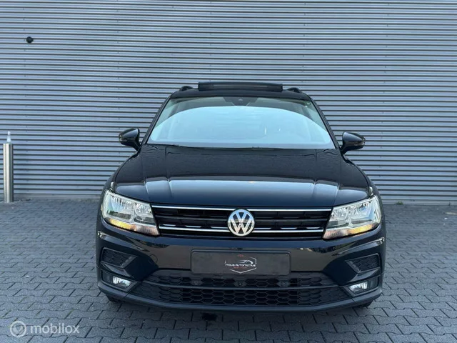 Volkswagen Tiguan 1.5 TSI ACT Highline Business R. Kenteken: HTT-50-N; Merk: Volkswagen; Model: Tiguan; Tellerstand: 127243 KM; Carrosserievorm: SUV; Aantal deuren: 5; Brandstofsoort: Benzine; Bouwjaar: 2019; Transmissie: Handgeschakeld; Kleur: zwart; Bekleding: Leder; Motorinhoud: 1495 cc; Aantal cilinders: 4; Vermogen: 110 kW / 150pk; Ledig gewicht: 1440 kg; Aantal zitplaatsen: 5; Verbruik: 6.7 l/100 km; BTW/Marge: Marge, de BTW is niet aftrekbaar. Pakket: Advance pakket. Aluminium interieur afwerking; Buitenspiegels elektrisch inklapbaar; Buitenspiegels met verlichting; Comfortstoel(en); Elektrisch glazen panorama-dak; Lendesteun(en) verstelbaar; Velours bekleding; Voorstoel(en) met massagefunctie; Voorstoelen verwarmd. Pakket: Leder pakket. Buitenspiegels elektr. met geheugen; Buitenspiegels elektrisch inklapbaar; Buitenspiegels met verlichting; Elektrisch verstelbare stoel(en) met geheugen; Lederen bekleding; Voorstoelen verwarmd. Pakket: Parkeer pakket. Aanhanger assistent...