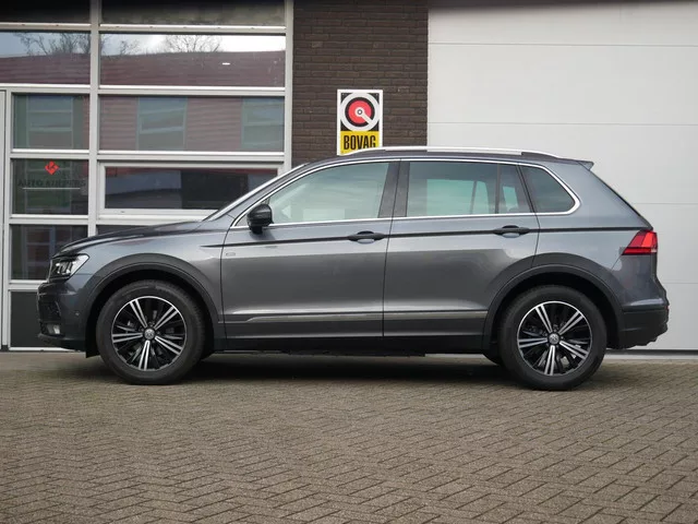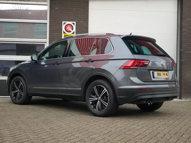 Volkswagen Tiguan 1.5 TSI ACT Highline UNIEK| Nieuwstaat| 1e Eigenaar| Dealer onderhouden. Kenteken: JNK-74-N; Merk: Volkswagen; Model: Tiguan; Tellerstand: 16651 KM; Carrosserievorm: SUV; Aantal deuren: 5; Brandstofsoort: Benzine; Bouwjaar: 2019; Transmissie: Automaat; Kleur: grijs Metallic; Bekleding: Stof; Kleur interieur: zwart; Motorinhoud: 1495 cc; Aantal cilinders: 4; Vermogen: 110 kW / 150pk; Ledig gewicht: 1440 kg; Aantal zitplaatsen: 5; Verbruik: 6.7 l/100 km; BTW/Marge: Marge, de BTW is niet aftrekbaar; Aantal sleutels: 2. Pakket: LED lichtpakket. Koplampen adaptief; Koplampreiniging. Pakket: Navigatie pakket. DVD speler; Navigatiesysteem full map + hard disk. Pakket: Optie pakket. Sportonderstel. Pakket: Parkeer pakket. Aanhanger assistent; Achteruitrijcamera; Parkeer assistent. Pakket: Spiegel pakket. Buitenspiegels elektrisch inklapbaar; Buitenspiegels met verlichting. Pakket: Veiligheids pakket. Achteruitrij assistent; Dodehoek detectie; File assistent. Pakket: Winter...