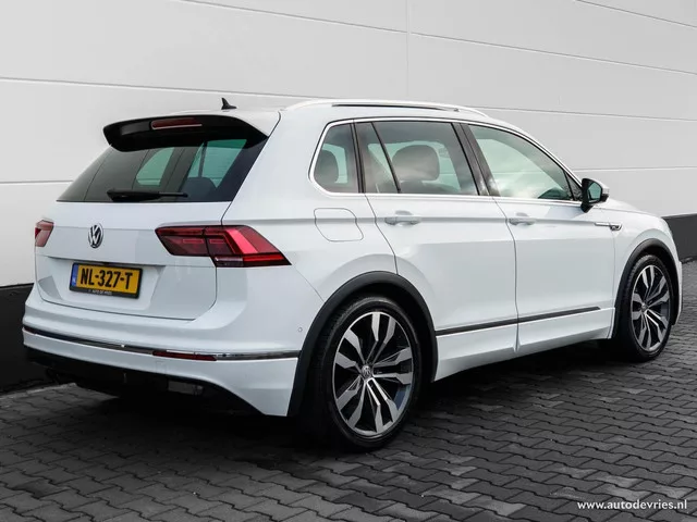 Volkswagen Tiguan 1.4 TSI ACT DSG Highline R-Line| Panoramadak | Camera | Adaptieve cruise | Trekhaak. Kenteken: NL-327-T; Merk: Volkswagen; Model: Tiguan; APK tot: 06-05-2026; Tellerstand: 151108 KM; Carrosserievorm: SUV; Aantal deuren: 5; Brandstofsoort: Benzine; Bouwjaar: 2017; Transmissie: Automaat 6-traps; Kleur: wit Metallic; Kleurnaam: Pure White; Bekleding: Leder; Kleur interieur: zwart; Motorinhoud: 1395 cc; Aantal cilinders: 4; Motorcode: CZE; Vermogen: 110 kW / 150pk; Ledig gewicht: 1398 kg; Max. trekgewicht: 1800 kg; Aantal zitplaatsen: 5; Verbruik: 6.1 l/100 km; BTW/Marge: Marge, de BTW is niet aftrekbaar; Lengte: 449 cm; Breedte: 186 cm; Aantal sleutels: 2; Onderhoudshistorie aanwezig: Ja; Motorrijtuigenbelasting: € 217 - 240 per kwartaal; Emissieklasse: Euro 6. Pakket: Optie pakket. Elektrisch bedienbare achterklep met sensorsturing; Keyless entry. Pakket: Parkeer pakket. Aanhanger assistent; Achteruitrijcamera; Parkeer assistent. Pakket: Winter pakket. ...