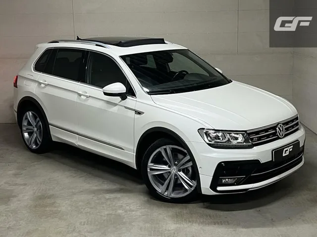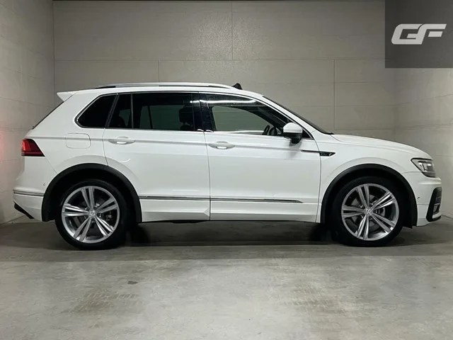 Volkswagen Tiguan 1.5 TSI ACT 2X R-Line Pano Virtual ACC NAP. Kenteken: PV-768-H; Merk: Volkswagen; Model: Tiguan; APK tot: 29-09-2026; Tellerstand: 120845 KM; Carrosserievorm: SUV; Aantal deuren: 5; Brandstofsoort: Benzine; Bouwjaar: 2017; Transmissie: Automaat; Kleur: wit; Bekleding: Stof; Kleur interieur: zwart; Motorinhoud: 1395 cc; Aantal cilinders: 4; Motorcode: CZE; Vermogen: 110 kW / 150pk; Ledig gewicht: 1450 kg; Max. trekgewicht: 1800 kg; Aantal zitplaatsen: 5; Verbruik: 6.1 l/100 km; BTW/Marge: Marge, de BTW is niet aftrekbaar; Lengte: 449 cm; Breedte: 186 cm; Aantal sleutels: 2; Onderhoudshistorie aanwezig: Dealer onderhouden; Motorrijtuigenbelasting: € 226 - 247 per kwartaal; Emissieklasse: Euro 6. Comfort. Boordcomputer; Regensensor. Exterieur. Buitenspiegels elektrisch verstel- en verwarmbaar; Centrale vergrendeling met afstandsbediening; Chroom delen exterieur; Dakrails; Elektrische achterklep; Extra getint glas achter; LED achterlichten; LED dagrijverlichting; LED...