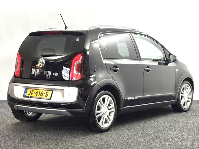 Super leuke Volkswagen Cross UP! BlueMotion. De UP! is keurig onderhouden, staat op goede all-Season banden en verkeerd in nette staat. (Navi, Maps & more scherm aanwezig). Belangrijke opties: - Full map navigatie met touchscreen. - Parkeersensoren achter. - Airconditioning. - Bluetooth telefoon en media. - Lichtmetalen velgen. Etc. Prijs is marge en volledig rijklaar. 5 versn., Handgeschakeld; Modeljaar: 2012; 4WD; 44 kW; 95 Nm; 3 cilinders; 999cc; Gewicht: 840kg; Laadvermogen: 450kg; GVW: 1.290kg; LxBxH: 354x165x150cm; Wielbasis: 242cm; 35l tank; 0-100 km/h: 14,4s; Topsnelheid: 161km/u; Interieur: zwart, Stof; 4 zitplaatsen; 4,1 l/100km; 5 l/100km; 3,6 l/100km; 95 g/km CO₂; Energielabel A; Euro 6; Onderhoudsboekjes aanwezig; Onderhouden volgens voorschriften; 100% Onderhouden; Aantal eigenaren: 5; APK bij aflevering; Algemene staat: goed; 2 sleutels (1 handzender); Wegenbelasting: € 70-€ 76p/kwrt; JF-416-S