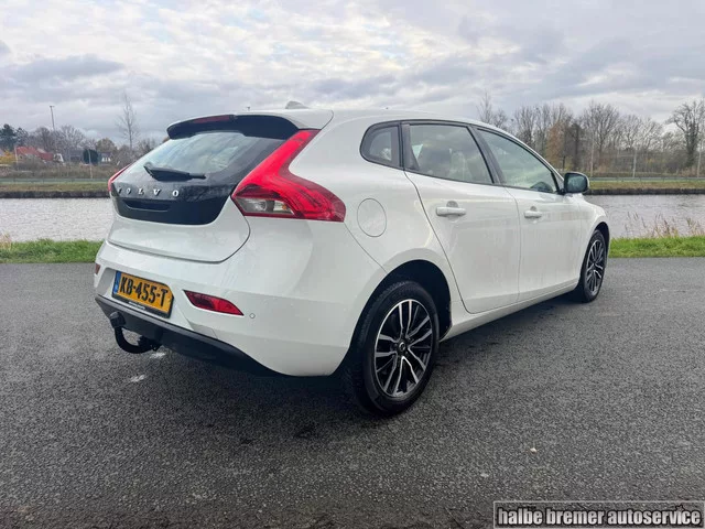 Volvo V40 1.5 T2 Nordic+|Stoelverwarming|Clima|PDC|Cruise. Kenteken: KB-455-T; Merk: Volvo; Model: V40; APK tot: 08-01-2027; Tellerstand: 195574 KM; Carrosserievorm: Hatchback; Aantal deuren: 5; Brandstofsoort: Benzine; Bouwjaar: 2016; Transmissie: Automaat; Kleur: wit; Motorinhoud: 1498 cc; Aantal cilinders: 4; Motorcode: B4154T5; Vermogen: 90 kW / 123pk; Ledig gewicht: 1335 kg; Max. trekgewicht: 1500 kg; Aantal zitplaatsen: 5; Verbruik: 5.4 l/100 km; BTW/Marge: Marge, de BTW is niet aftrekbaar; Lengte: 437 cm; Breedte: 180 cm; Hoogte: 1420 cm; Aantal sleutels: 2; Onderhoudshistorie aanwezig: Dealer onderhouden; Motorrijtuigenbelasting: € 199 - 217 per kwartaal; Emissieklasse: Euro 6. Comfort. Boordcomputer; Cruise control; Regensensor. Exterieur. Buitenspiegels elektrisch inklapbaar; Buitenspiegels elektrisch verstel- en verwarmbaar; Centrale vergrendeling met afstandsbediening; Dakspoiler; Koplampen adaptief; Koplampreiniging; LED achterlichten; LED dagrijverlichting; LED...