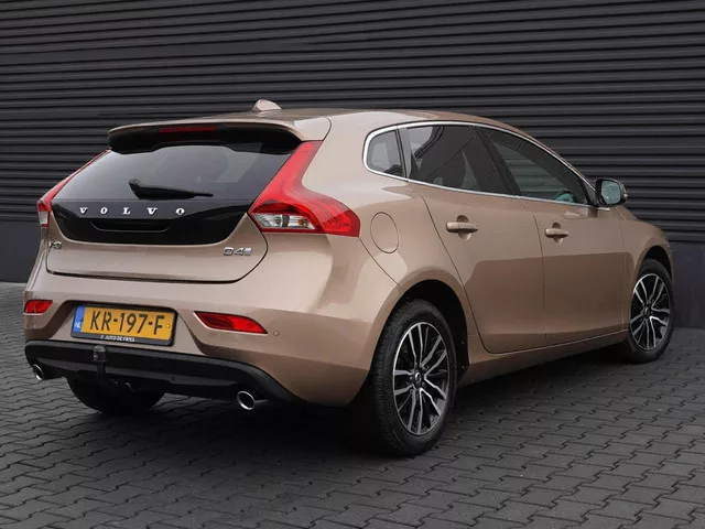 Volvo V40 2.0 D4 190pk Summum | Zwart leder | Panoramadak | Camera | Trekhaak. Kenteken: KR-197-F; Merk: Volvo; Model: V40; APK tot: 21-04-2026; Tellerstand: 148490 KM; Carrosserievorm: Hatchback; Aantal deuren: 5; Brandstofsoort: Diesel; Bouwjaar: 2016; Transmissie: Handgeschakeld 6-bak; Kleur: bruin Metallic; Kleurnaam: Raw Copper metallic; Bekleding: Leder; Kleur interieur: zwart; Motorinhoud: 1969 cc; Aantal cilinders: 4; Motorcode: D4204T14; Vermogen: 140 kW / 191pk; Ledig gewicht: 1364 kg; Max. trekgewicht: 1500 kg; Aantal zitplaatsen: 5; Verbruik: 3.7 l/100 km; BTW/Marge: Marge, de BTW is niet aftrekbaar; Lengte: 437 cm; Breedte: 180 cm; Hoogte: 1420 cm; Aantal sleutels: 2; Onderhoudshistorie aanwezig: Dealer onderhouden; Motorrijtuigenbelasting: € 447 - 469 per kwartaal; Emissieklasse: Euro 6. Pakket: Nordic+ Luxury. Achteruitrijcamera; Alarm klasse 3; Armsteun achter; Armsteun voor; Chroom delen exterieur; Elektrisch glazen panorama-dak; Elektrisch verstelb....
