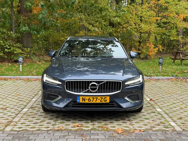 Volvo V60 Recharge T6 Plus Bright – 2022 – BTW-auto. Zeer nette en rijk uitgeruste Volvo V60 Plug-in Hybrid in de gewilde kleur Denim Blue Metallic, afkomstig van de eerste zakelijke eigenaar. Het betreft een BTW-auto, de prijs is dus inclusief BTW. De auto is volledig dealer onderhouden en wordt door ons afgeleverd met een nieuwe APK zonder bijkomende kosten. De auto is uitgerust met een 293 pk sterke hybride aandrijflijn (T6 AWD), een 8-traps automaat en tal van luxe opties. Belangrijke opties: LED koplampen met grootlichtassistent. Adaptieve cruise control. Lane Keeping Aid. Driver Alert. Dodehoekdetectie. Parkeersensoren voor + achter met achteruitrijcamera. Elektrische achterklep. Keyless Drive. Navigatie met Google Services & DAB+. Stoelverwarming vóór en achter. Elektrisch verstelbare stoelen met geheugenfunctie. Stoelventilatie vóór. Massagefunctie in beide voorstoelen. Verwarmd stuurwiel. Panorama schuif-/kanteldak. Vol lederen geperforeerde nappabekleding. Subwoofer. 20...