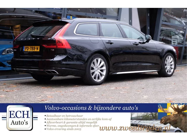 Volledig Volvo-dealer onderhouden V90 T5 benzine automaat. Laatste beurt gehad op 166.993 km in februari 2025. Voorzien van de Polestar Optimalisatie, levert nu 261 pk en 400 nm koppel. 8 versn., Automaat; Modeljaar: 2016; 188 kW; 400 Nm; 4 cilinders; 1.969cc; Gewicht: 1.628kg; Laadvermogen: 672kg; GVW: 2.300kg; Max. trekgewicht: 1.800kg; Max. dakbelasting: 75kg; LxBxH: 494x189x144cm; Wielbasis: 294cm; 55l tank; 0-100 km/h: 6,9s; Topsnelheid: 230km/u; Interieurkleur: zwart; 5 zitplaatsen; 6,8 l/100km; 9 l/100km; 5,6 l/100km; 154 g/km CO₂; Energielabel C; Euro 6; Aantal eigenaren: 7; APK: tot feb. 2026; 2 sleutels (2 handzenders); E.C.H. Auto's GARANTIE -- 1 maand draaiende gedeelte motor + bak; 1 maand garantie; 5.000 km garantie; Altijd standaard garantie op draaiende gedeelte motor + versnellingsbak voor alle auto's boven de 4500 euro.; Wegenbelasting: € 269-€ 297p/kwrt; Optioneel afleverpakket: Afleverpakket Zweedsrijden (€ 495); PD-788-N