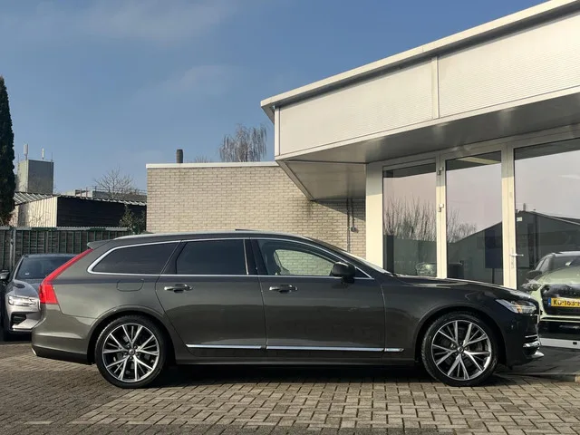 Volvo V90 2.0 T8 AWD Inscription Voorzien van oa: Stoelventilatie, pano, el. trekhaak, stoel/stuurverwarming, 360camera NL AUTO. Volvo V90 2.0 T8 AWD Inscription PANO+TREKH+360CAM+MASSAGE. Kenteken: XF-992-T; Merk: Volvo; Model: V90; APK tot: 04-01-2027; Tellerstand: 159158 KM; Carrosserievorm: Station; Aantal deuren: 5; Brandstofsoort: Hybride (Elektrisch/Benzine); Bouwjaar: 2019; Transmissie: Automaat; Kleur: grijs; Kleurnaam: Pine grey metallic; Bekleding: Leder; Kleur interieur: zwart; Interieurnaam: Black leather Inscription; Motorinhoud: 1969 cc; Aantal cilinders: 4; Motorcode: B4204T34; Vermogen: 287 kW / 391pk; Ledig gewicht: 1950 kg; Max. trekgewicht: 2100 kg; Aantal zitplaatsen: 5; Verbruik: 1.9 l/100 km; BTW/Marge: BTW aftrekbaar, de prijs is inclusief BTW; Lengte: 494 cm; Breedte: 188 cm; Hoogte: 1442 cm; Aantal sleutels: 2; Motorrijtuigenbelasting: € 360 - 394 per kwartaal; Emissieklasse: Euro 6. Comfort. Boordcomputer; Regensensor. Exterieur. Buitenspiegel(s)...