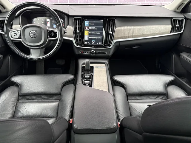 Een super complete Volvo V90 2.0 B5 AWD 250PK. In de Pro uitvoering en o.a. voorzien van: Semi elektrisch wegklapbare trekhaak, elektrisch verstelbare bestuurdersstoel met geheugen, schuif/kantel panoramadak,  360 graden camera, zonneschermen achter, extra getint glas, verstelbare lendesteun, elektrisch verstelbare bijrijdersstoel met geheugen, intellisafe surround, Blis dodehoekdetectie, parkeersensoren voor en achter, parkeercamera, stoelverwarming, verwarmbare voorruit, stuurverwarming, zitvlak verlengers, leder, metallic lak. Tot ziens in Raalte bij Matthijs, Paul, Winfred, Duncan en Bas. 8 versn., Automaat; Modeljaar: 2020; 4WD; 184 kW; 350 Nm; 4 cilinders; 1.969cc; Gewicht: 1.830kg; Laadvermogen: 620kg; GVW: 2.450kg; Max. trekgewicht: 2.400kg; LxB: 496x190cm; Wielbasis: 294cm; 71l tank; 0-100 km/h: 7,4s; Topsnelheid: 180km/u; Interieurkleur: CHARCOAL/LEAA/CHARCOAL (RA00); 5 zitplaatsen; 6,7 l/100km; 178 g/km CO₂; Energielabel C; Euro 6d-TEMP; APK: tot jan. 2026; Technische...