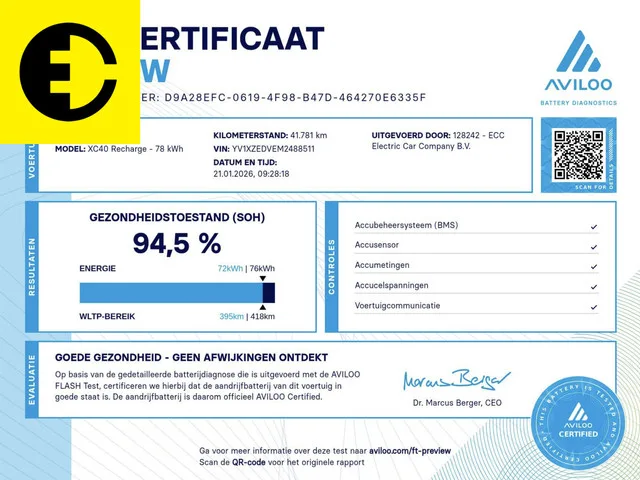 Welkom bij ECC Electric Car Company. Let op: We zijn uitsluitend geopend op afspraak. Wij zijn volledig gespecialiseerd in de verkoop van elektrische voertuigen . Indien u vragen heeft kunt u ons bereiken op +31 320 726 000 of via verkoop@electriccarcompany.nl. De vraagprijs van €28.950 is een vaste meeneemprijs inclusief terugvorderbare BTW voor ondernemers. Let op, SOH is 94,5%. Omschrijving: Deze spraakmakende Volvo XC40 is voorzien van een witte metallic lak, stoelverwarming voor, stuurverwarming, Google maps, cruise control, CarPlay, Google Play store, zwarte stoelen met witte details, trekhaak, panoramadak en 19 inch velgen. Het betreft de Recharge P8 AWD wat resulteert in een praktijkactieradius van rond de 400 km (afhankelijk van rijstijl en omstandigheden). Voor deze Volvo krijgt u 30% korting tot 2030 op het reguliere wegenbelastingtarief. Intresse? Mail, app, en bel gerust. Exclusieve voordelen van ECC Electric Car Company:  . Volledige kennis over elektrisch rijden...