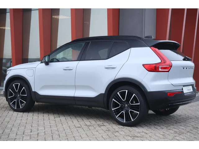 Volvo XC40 T4 Recharge R-Design | Stoelverwarming | Parkeercamera | H&K | Pilot Assist | Glossy Black. Kenteken: JFB-15-F; Merk: Volvo; Model: XC40; Tellerstand: 101082 KM; Carrosserievorm: SUV; Aantal deuren: 5; Brandstofsoort: Hybride (Elektrisch/Benzine); Accucapaciteit: 11 kWh; Bouwjaar: 2021; Transmissie: Automaat; Kleur: grijs Metallic; Kleurnaam: Glacier Silver metallic; Bekleding: Leder/Alcantara; Kleur interieur: zwart; Motorinhoud: 1477 cc; Aantal cilinders: 3; Motorcode: B3154T10; Vermogen: 95 kW / 129pk; Ledig gewicht: 1712 kg; Max. trekgewicht: 1800 kg; Aantal zitplaatsen: 5; Verbruik: 2.1 l/100 km; BTW/Marge: BTW aftrekbaar, de prijs is inclusief BTW; Lengte: 443 cm; Breedte: 187 cm; Hoogte: 1632 cm; Aantal sleutels: 2; Onderhoudshistorie aanwezig: Dealer onderhouden; Motorrijtuigenbelasting: € 307 - 335 per kwartaal; Emissieklasse: Euro 6. Bijzondere opties & accessoires. 21" 5-Dubbel Spaaks Black / Diamond Cut; Achteruitrijcamera; Elektrisch verstelb....