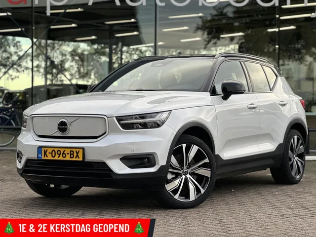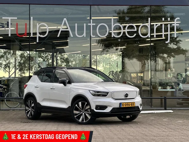 Volvo XC40 Recharge P8 AWD R-Design Harman/Kardon. Volvo XC40 Recharge P8 AWD R-Design Harman/Kardon. Kenteken: K-096-BX; Merk: Volvo; Model: XC40; APK tot: 02-12-2026; Tellerstand: 88029 KM; Carrosserievorm: SUV; Aantal deuren: 5; Brandstofsoort: Elektrisch; Bouwjaar: 2020; Transmissie: Automaat; Kleur: wit Parelmoer; Bekleding: Leder; Kleur interieur: zwart; Motorcode: EAD3.1; Vermogen: 80 kW / 109pk; Ledig gewicht: 2088 kg; Max. trekgewicht: 1500 kg; Aantal zitplaatsen: 5; BTW/Marge: BTW aftrekbaar, de prijs is inclusief BTW; Lengte: 443 cm; Breedte: 187 cm; Hoogte: 1628 cm; Aantal sleutels: 2; Onderhoudshistorie aanwezig: Dealer onderhouden; Emissieklasse: Euro Z. Pakket: Audio & Park Assist Pack. Achteruitrijcamera; Audio installatie premium; Parkeersensor voor. Pakket: Lighting Pack. Koplampen adaptief; Koplampreiniging. Pakket: Park Assist Pack. Achteruitrijcamera; Parkeersensor voor. Pakket: Pack Audio. Achteruitrijcamera; Audio installatie high end; Parkeersensor voor. ...