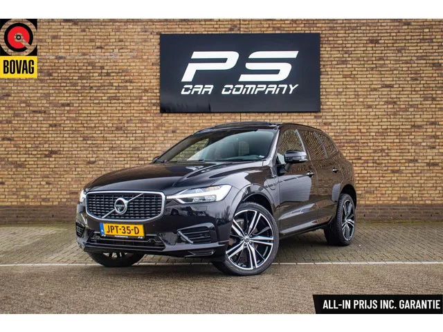 Volvo XC60 2.0 T8 Twin Engine AWD R-Design, Luchtvering, H&K, Pano, Leder, Memory, Stuur verwarmd, Keyless, ACC, 360Cam, Trekhaak. Volvo XC60 2.0 T8 Twin Engine AWD R-Design, Luchtvering, H&K. Kenteken: JPT-35-D; Merk: Volvo; Model: XC60; APK tot: 31-08-2027; Tellerstand: 98024 KM; Carrosserievorm: SUV; Aantal deuren: 5; Brandstofsoort: Hybride (Elektrisch/Benzine); Bouwjaar: 2020; Transmissie: Automaat; Kleur: zwart; Bekleding: Leder; Kleur interieur: zwart; Motorinhoud: 1969 cc; Aantal cilinders: 4; Vermogen: 281 kW / 383pk; Ledig gewicht: 2061 kg; Max. trekgewicht: 2100 kg; Aantal zitplaatsen: 5; Verbruik: 2 l/100 km; BTW/Marge: Marge, de BTW is niet aftrekbaar; Lengte: 469 cm; Breedte: 192 cm; Aantal sleutels: 2; Onderhoudshistorie aanwezig: Dealer onderhouden; Motorrijtuigenbelasting: € 99 - 110 per kwartaal; Emissieklasse: Euro Z; Bandenmaat voor: 255/40/21; Bandemaat achter: 255/40/21. Comfort. Boordcomputer; Regensensor. Exterieur. Achterruitwisser; Adaptief demping systeem...