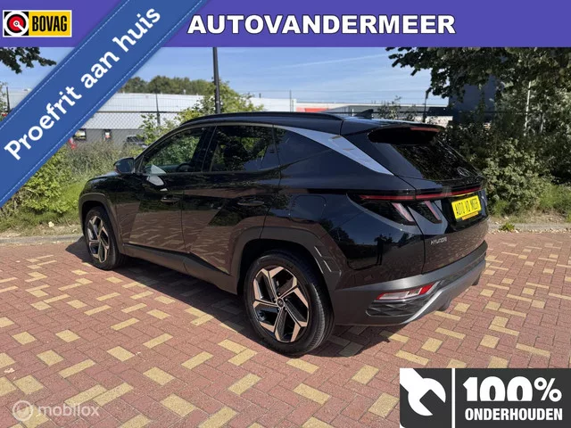 Hyundai Tucson 1.6 T-GDI PHEV Premium 4WD. Kenteken: JDP-22-J; Merk: Hyundai; Model: Tucson; APK tot: 20-09-2026; Tellerstand: 54283 KM; Carrosserievorm: SUV; Aantal deuren: 5; Brandstofsoort: Hybride (Elektrisch/Benzine); Bouwjaar: 2022; Transmissie: Automaat; Kleur: zwart; Motorinhoud: 1598 cc; Aantal cilinders: 4; Vermogen: 195 kW / 266pk; Ledig gewicht: 1793 kg; Aantal zitplaatsen: 5; Verbruik: 1.4 l/100 km; BTW/Marge: BTW aftrekbaar, de prijs is inclusief BTW; Aantal sleutels: 2. Comfort. Boordcomputer; Regensensor. Exterieur. Buitenspiegel rechts; Buitenspiegels elektrisch inklapbaar; Buitenspiegels elektrisch verstelbaar; Buitenspiegels in carrosseriekleur; Buitenspiegels verwarmbaar; Dagrijverlichting; Dakrails; Dimlichten automatisch; Extra getint glas achter; Getint glas; Keyless entry; Koplampen adaptief; LED achterlichten; LED dagrijverlichting; LED koplampen; Lichtmetalen velgen 19 inch; Lichtmetalen velgen 19"; Metaalkleur; Park Distance Control; Parkeersensor achter...