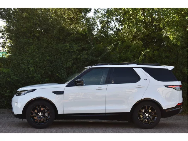 Wat een prachtige en indrukwekkende Land Rover mogen wij hierbij aanbieden: deze Discovery , voorzien van een 3.000 cc benzinemotor welke goed is voor maar liefst 340 PK! De auto verkeerd in een werkelijk prachtige staat en is uitgerust met o.a. een prachtig zwart lederen interieur, Climate Control, Cruise Control, Panoramadak, Navigatie, Bluetooth voor audio & telefonie, DAB Radio, Volledig instelbare luchtvering, Instelbare rijmodussen, Achteruitrijcamera, dikke 20" LM-Velgen, rondom full LED verlichting en alle Originele boekjes en sleutels! Kortom, een échte Land Rover Discovery! 8 versn., Automaat; Modeljaar: 2017; 4WD; 250 kW; 450 Nm; 6 cilinders; 2.995cc; Gewicht: 2.123kg; Laadvermogen: 867kg; GVW: 2.990kg; Max. trekgewicht: 3.500kg; LxBxH: 514x200x189cm; Wielbasis: 292cm; 89l tank; 0-100 km/h: 7,1s; Topsnelheid: 215km/u; Interieurkleur: zwart; 5 zitplaatsen; 10,9 l/100km; 14,2 l/100km; 9,3 l/100km; 254 g/km CO₂; Energielabel G; Euro 6; Aantal eigenaren: 3; BOVAG Garantie (12...