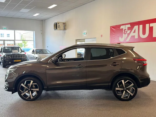 U rijdt gemakkelijk, comfortabel en zonder zorgen met deze Nissan Qashqai. Met zijn benzinemotor en automatische transmissie is dit een prima auto voor nog vele kilometers. Met het lederen interieur ervaart u direct het gevoel van luxe en comfort. Lekker hoor, die verwarmbare voorstoelen. Helemaal op koude dagen. Zicht, licht en toch dicht! Een geweldige rijervaring met het glazen panoramadak. Ook is de auto voorzien van: 19 inch lichtmetalen velgen, LED-dagrijverlichting, extra getint glas, in delen neerklapbare achterbank en verstelbare lendensteunen. De vier camera's die samen de 360 graden camera vormen, bieden u de mogelijkheid om obstakels in elke richting te zien. Bij de luxe van deze auto hoort ook automatische airconditioning. Boem is ho? Niet bij deze Nissan Qashqai. De piepjes van de parkeersensoren waarschuwen u op tijd voor obstakels. Zuinig en zeker zoeven? Dan is de cruise control ideaal! Het onhandige gevoel van eerst graven naar de autosleutels om in te kunnen...