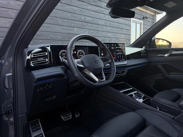 Dolphin Grey metallic, Panorama-schuif-/kanteldak, elektrisch bedienbaar, R-Line Exterieur, Velgen 'Leeds', 20 inch lichtmetaal, buitenspiegels elektrisch inklapbaar, buitenspiegels elektrisch verstelbaar, buitenspiegels in carrosseriekleur, buitenspiegels met verlichting, buitenspiegels verwarmbaar, chroom delen exterieur, dakrails, dimlichten automatisch, extra getint glas, geluid- en warmtewerend glas, geluidsisolerend glas, LED achterlichten, mistlampen voor, regensensor, verlichte grille/strip